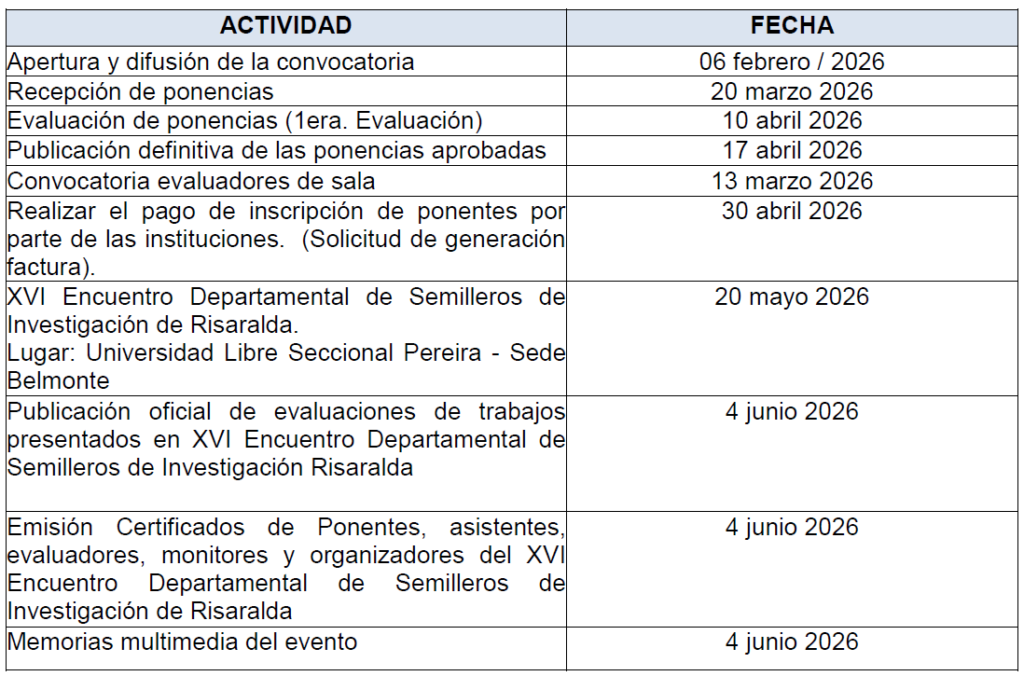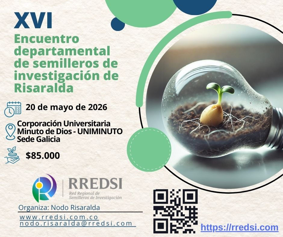 El XVI Encuentro Departamental de Semilleros de Investigación de Risaralda se realizará en modalidad presencial el 20 de Mayo del 2026 en la Corporación Universitaria Minuto de Dios – UNIMINUTO Sede Galicia.